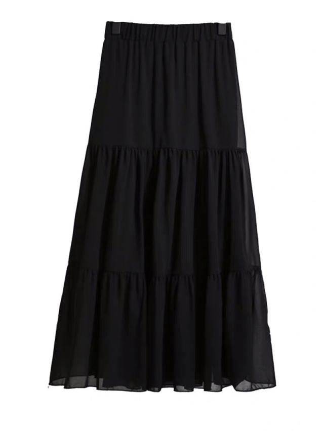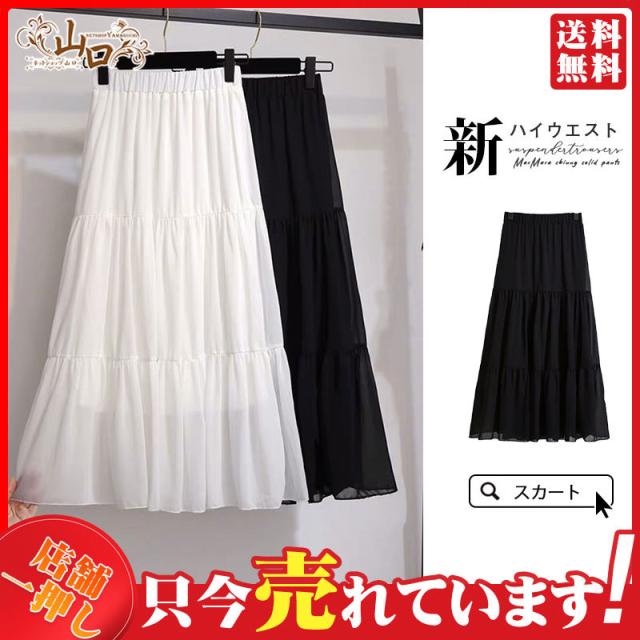 送料無料 ロングスカート マキシスカート フレアスカート シフォンスカート ロング ウエストゴム シフォン フレア マキシスカート プリーツ 無地