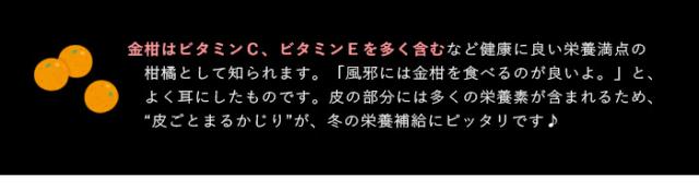 | この完熟きんかんは、ホントに生のまま丸かじりがおいしい “まるかじり”金柑と呼ばれる通り、甘く香り良く、皮もおいしい♪熟度の高い宮崎の完熟「たまたま」ならではのおいしさです。まるごと食べても、ほろ苦さが大人味のアクセントとして丁度よい加減であり、強い甘味がカバーしてくれている印象。決して甘酸っぱいではなく、口の中は【甘甘苦香香】って感じ♪外の皮はザクザクとした歯ごたえが心地よく♪内側の白い部分が果汁のある甘いところです。 |