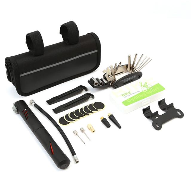 自転車 工具 通販 セット 16イン1修理キット 自転車用工具セット 自転車用工具 多機能 修理セット 修理 携帯 空気入れ 収納バッグ付き マルチツール タイヤパッチ メンテナンス