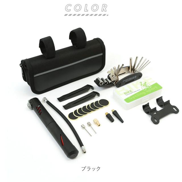 | 重量 | [セット全体]約482g [収納バッグ]約113g [16-in-1マルチツール]約201g [空気入れセット]約97g [パンク修理キット]約56g |