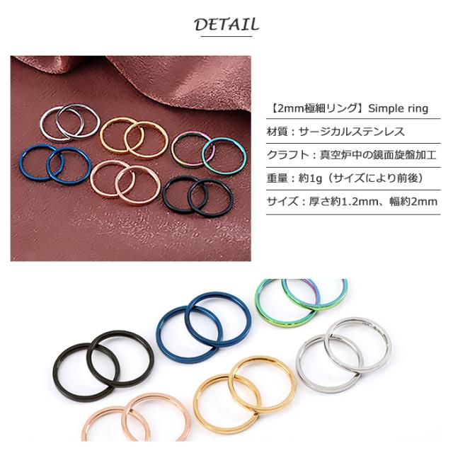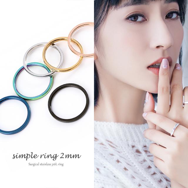 送料無料サージカルステンレスリング 『2mm極細指輪』simple ring 316L ステンレス製 華奢リング ミディ スキニー フラットバンドリング レディース アクセサリー キラキラ 結婚指輪 金属アレルギー対応 記念日 大人かわいい ペアリングにも