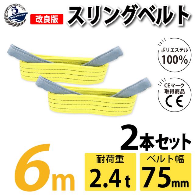 スリング スリングベルト ナイロンスリング ベルトスリング 2本組 幅 75mm 6m 使用警告線付き 業務用 吊り具 送料無料