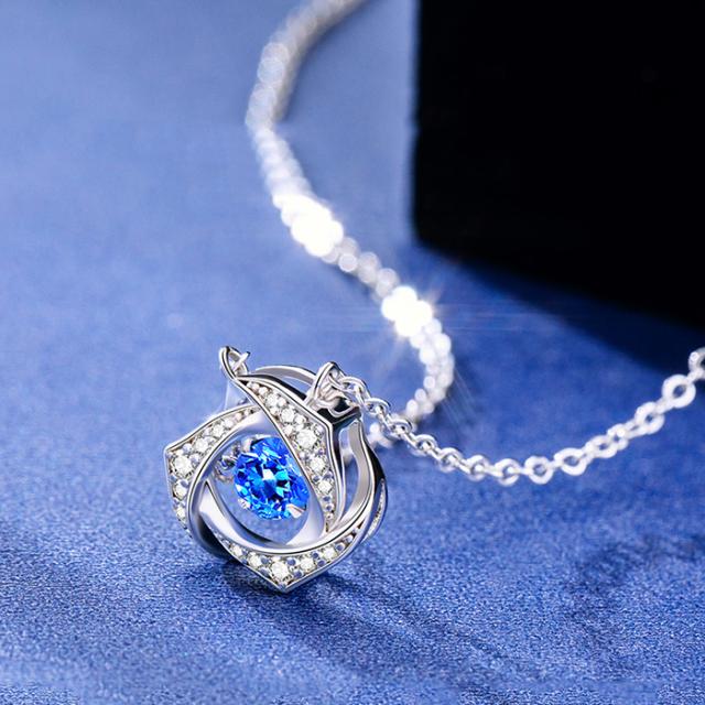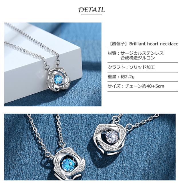 サージカルステンレスネックレス 『Brilliant heart necklace ブルー』 316L ステンレス製 華奢ネックレス プリンセスネックレス チョーカー ペンダント ラインストーン レディース アクセサリー キラキラ ニッケルフリー 金属アレルギー対応