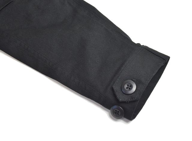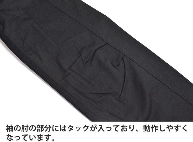 ■高めの襟デザインと袖口はボタンで絞る事がサイズ調節が可能