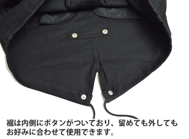 ■「フィッシュテール」と呼ばれる二股に分かれた後ろ裾はスナップ釦で折りたためるので、お好みで2WAY楽しめます。