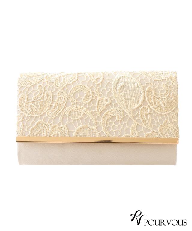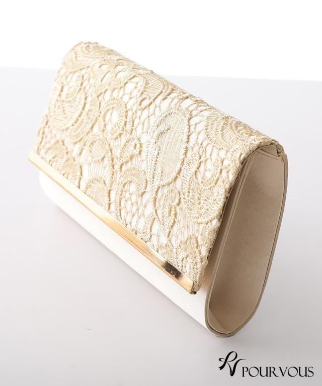 刺繍レースクラッチバック【949212232】20代・30代・40代・50代パーティーバッグ・マグネット・フラワー・コサージュ・ストラップ・フォーマル・シンプル・サブバック付き・大容量・結婚式・二次会・同窓会・お呼ばれ・謝恩会・お宮参り・女子会・デート・入学式・卒業式・パーティー・冠婚葬祭