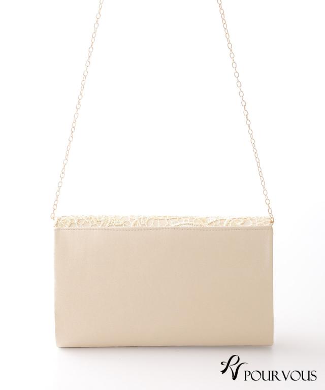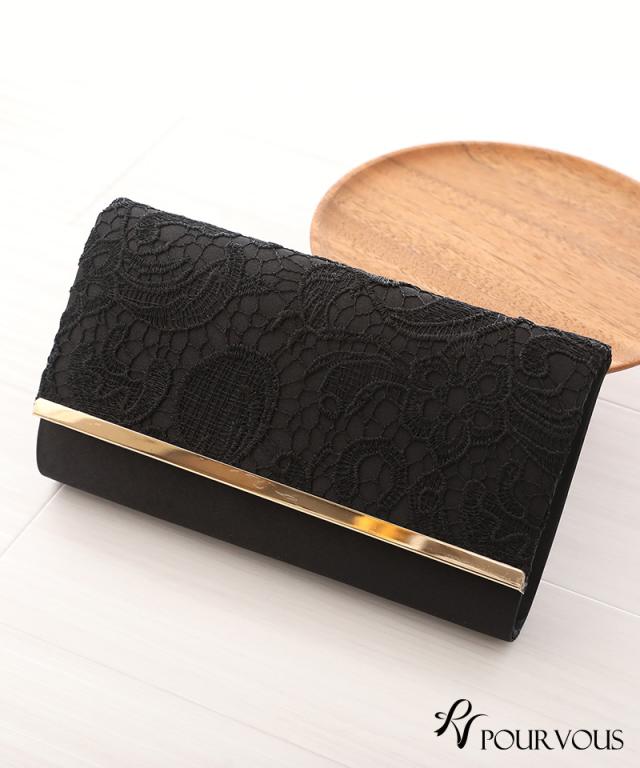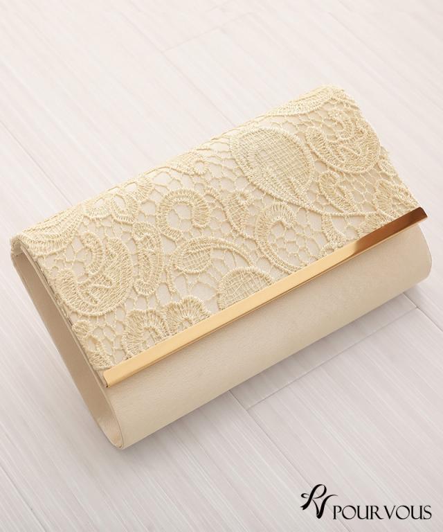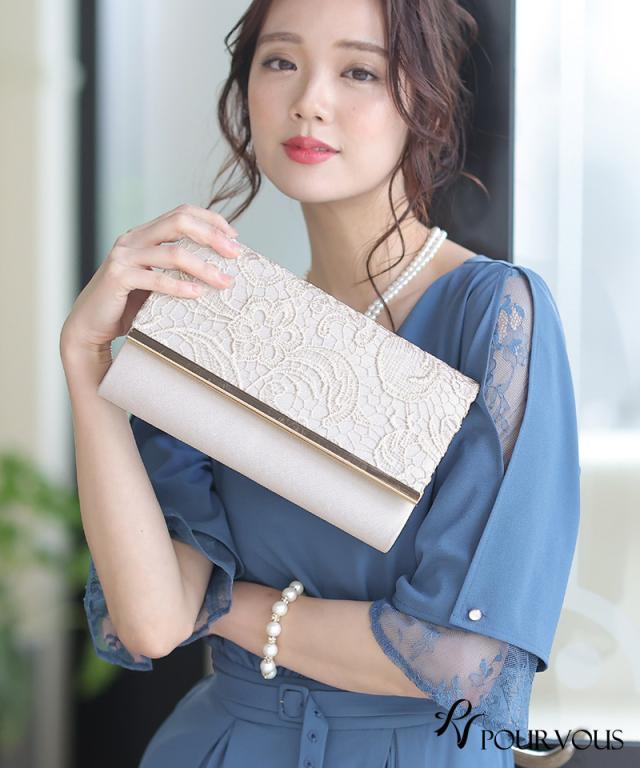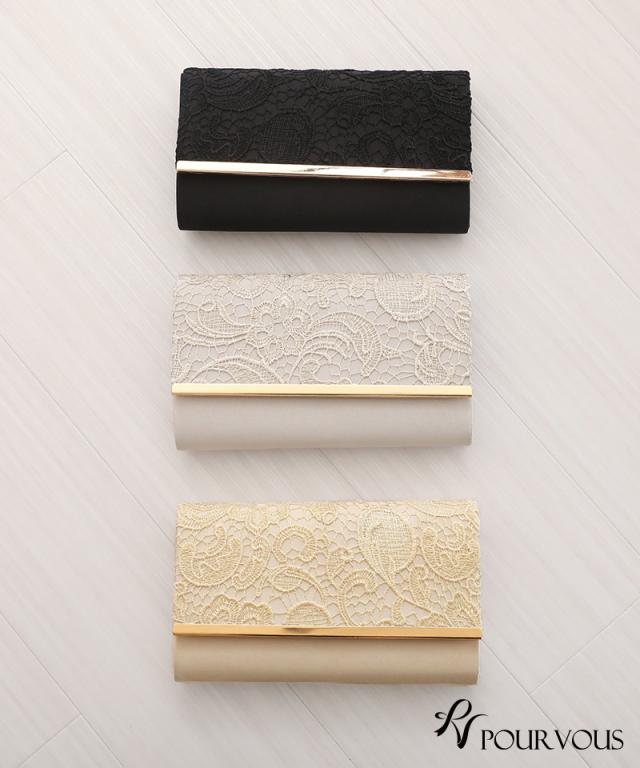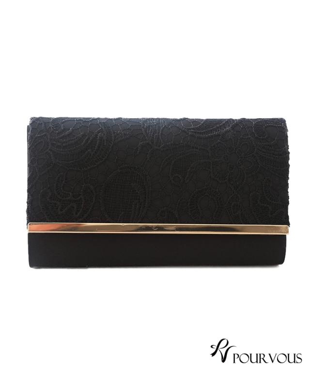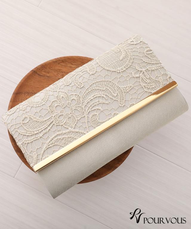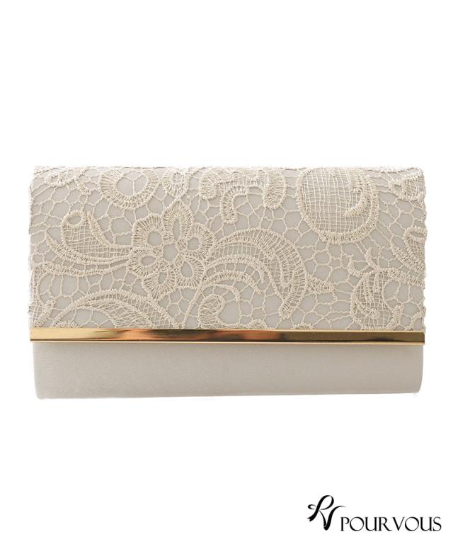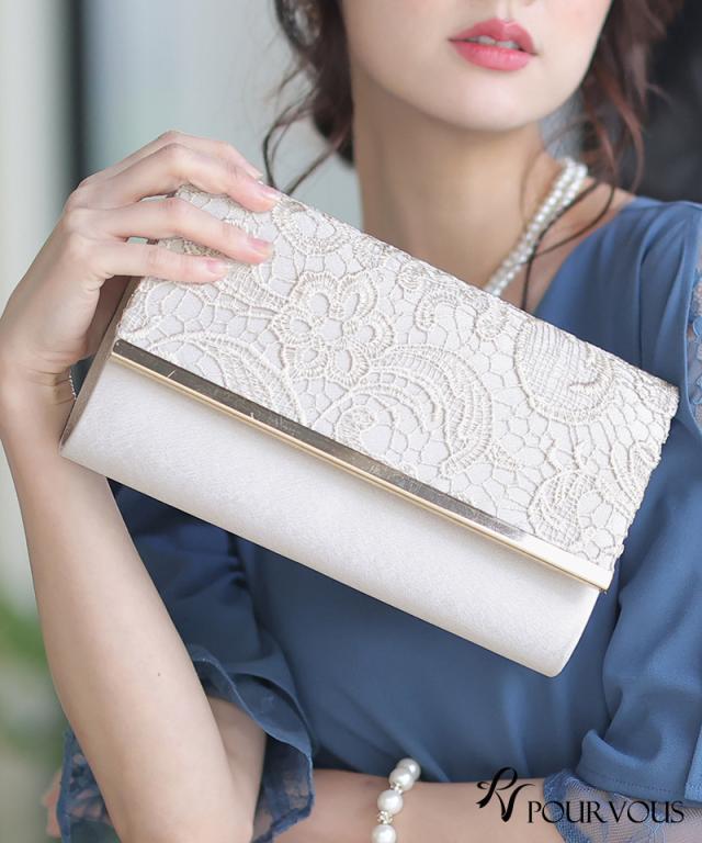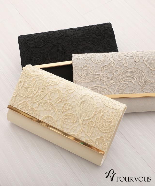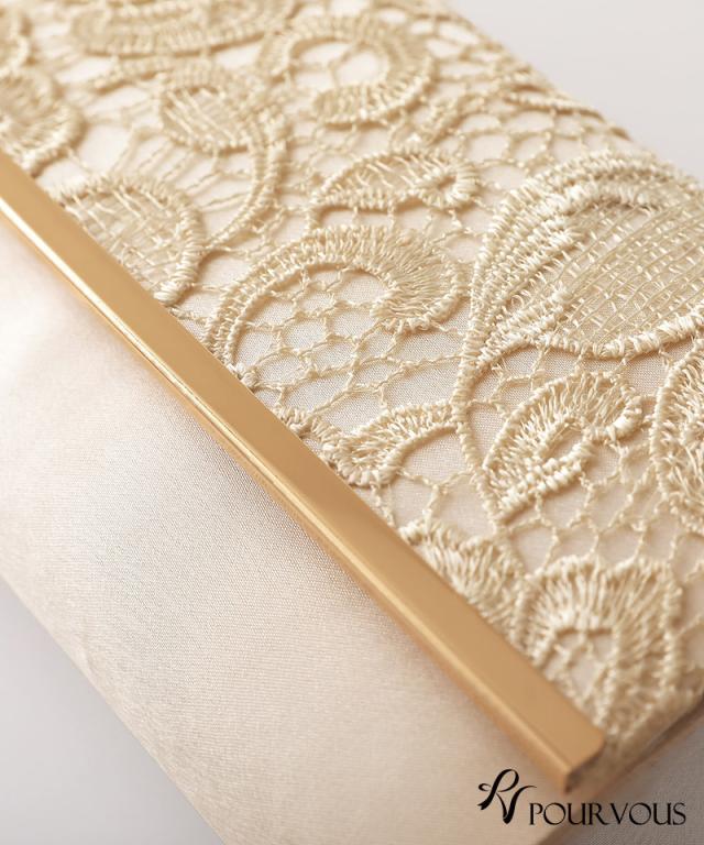 レース生地を重ね合わせたデザインがワンランク上のお洒落なクラッチバッグです。