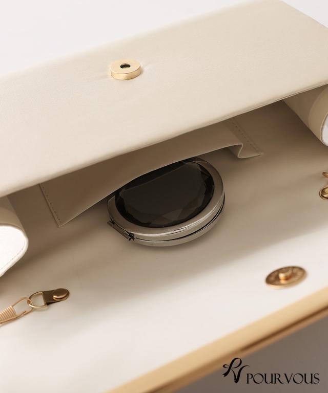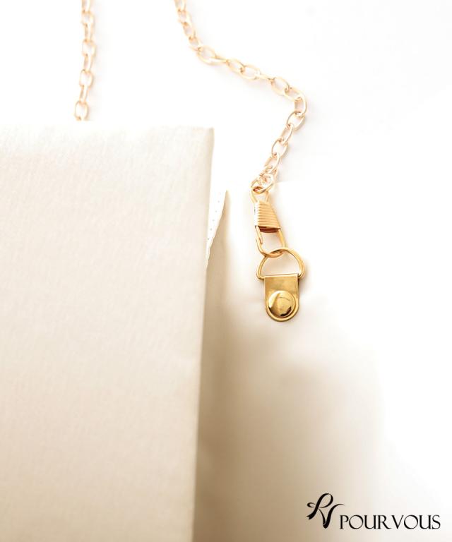 長さ違いのチェーン付きでショルダー使いもできるアイテムになっています。