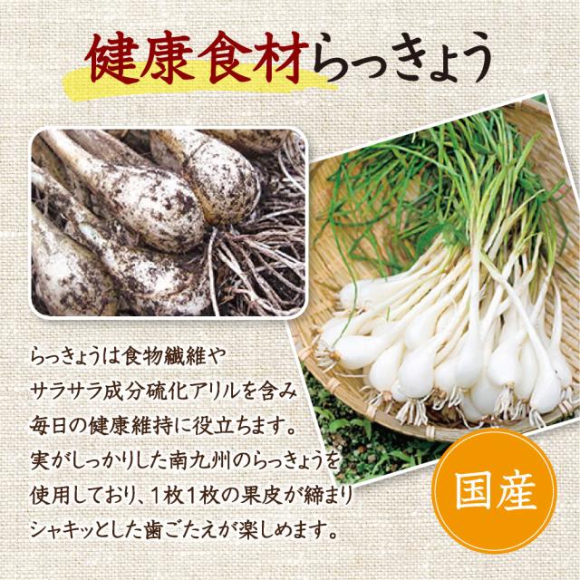 国産らっきょうを使用し、シャキっとした歯ざわりと、甘酸っぱさで食が進みます。
