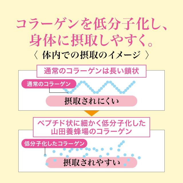 健康や美容に欠かせない成分「コラーゲン」は体内で生成されますが、30代をピークに生成されにくくなるため、サプリメントでの摂取がおすすめです。山田養蜂場のコラーゲンは身体に摂取されやすいよう、あらかじめペプチド状に低分子化。さらに若々しさや健康をサポートするビタミンEも配合しました。美しく健やかな毎日にお役立てください。