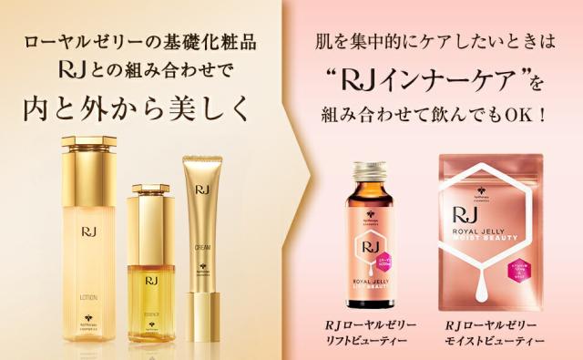 【RJインナーケア】![]() 美容成分の宝庫ローヤルゼリーで内と外から健やかに美しくするという、「内外美容」の考え方をもとに作られた「RJインナーケア」シリーズ。様々な研究を重ね、ローヤルゼリーに美容成分をプラスすることで、身体の内側からキレイを底上げします。 |