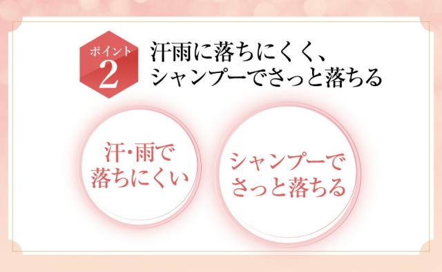 ・汗や雨で落ちにくく、シャンプーで落とせます。