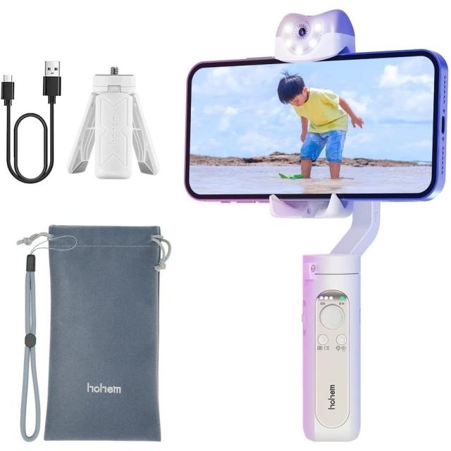 新発売 Hohem iSteady V2 スマホジンバル 折りたたみ式 263g超軽量 3軸スタビライザー AI顔追跡 LEDライト付き 美顔 専用APP制御 Vlog作り 自撮り用