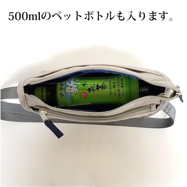 長財布も収納OK、500mlのペットボトルも横にして収納可能です。