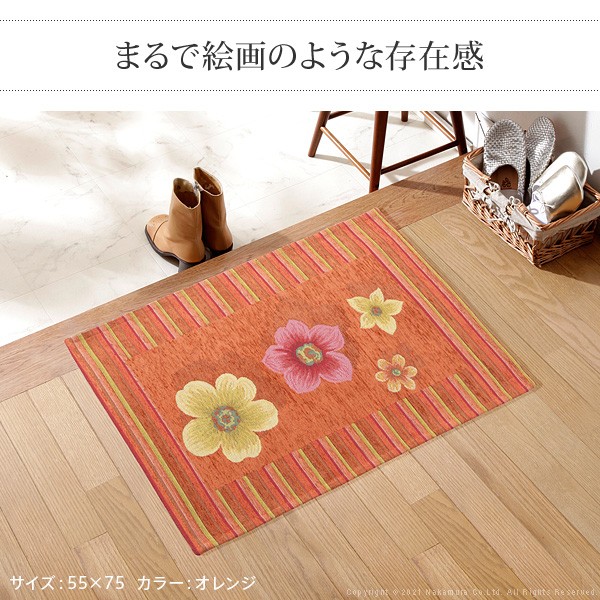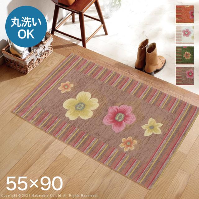 イタリア製 ジャガード 玄関マット 室内 フィオーレ 汚れ 入り口 55×90 洗える 丸洗い 長方形 おしゃれ かわいい 北欧 ウォッシャブル 屋内(代引不可)【送料無料】