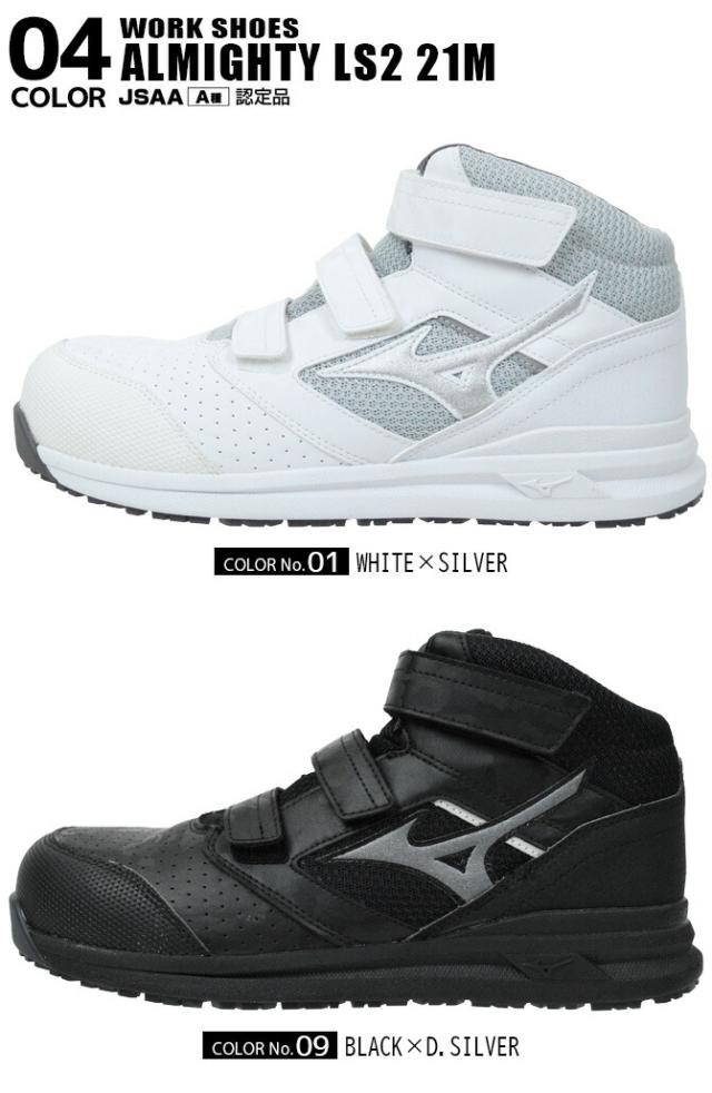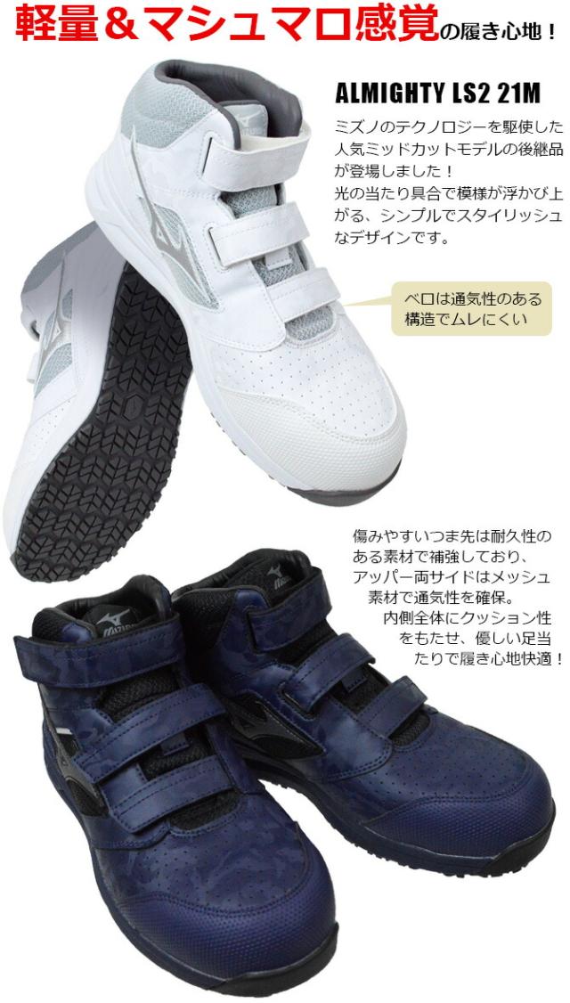 安全靴 スニーカー ミズノ オールマイティ ALMIGHTY LS2 21M F1GA2200 ハイカット メンズ レディース マジックテープ プロテクティブスニーカーA種 耐滑 耐油 屈曲 衝撃吸収