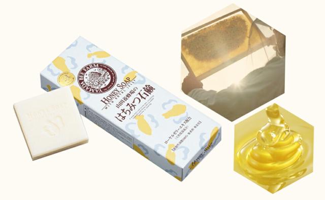 みつばちの恵みを凝縮した「はちみつ石鹸」は泡立ちが良く、キメが細かい泡で、しっかりと汚れを落とし、しっとりと潤い溢れる肌に洗い上げます。 |