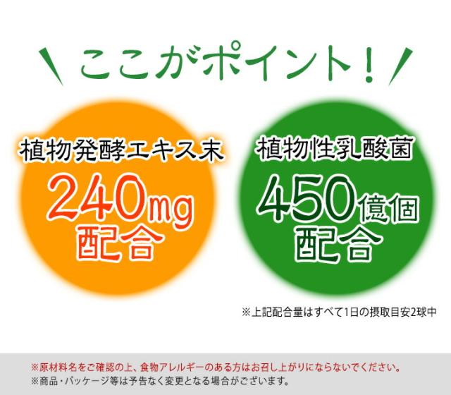 | 商品説明 | 150種類もの厳選した植物素材を発酵させたエキスをギュッと凝縮しました。 さらに、植物性乳酸菌450億個、食事のサポート成分であるガルシニアエキス末10mg配合。 |