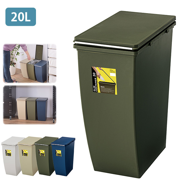 ダストボックス ゴミ箱 20L 連結可能 分別用におすすめ 蓋付き スリム トラッシュボックス グリーン ふた付き 代引不可 北海道・沖縄県・離島部送料別