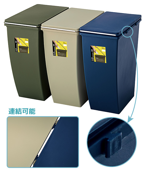 ダストボックス ゴミ箱 20L 連結可能 分別用におすすめ 蓋付き スリム トラッシュボックス ネイビー ふた付き 代引不可 北海道・沖縄県・離島部送料別