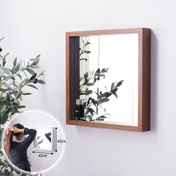 ウォールミラー 小物が収納できる 壁掛けミラー 姿見 鏡 ウォールナット ブラウン