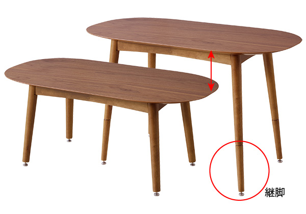センターテーブル 高さ2段階 2WAYテーブル ローテーブル ダイニングテーブル 天然木 ウォールナット突板を使用した おしゃれなデスク 継脚付き 幅100cm×奥50cm