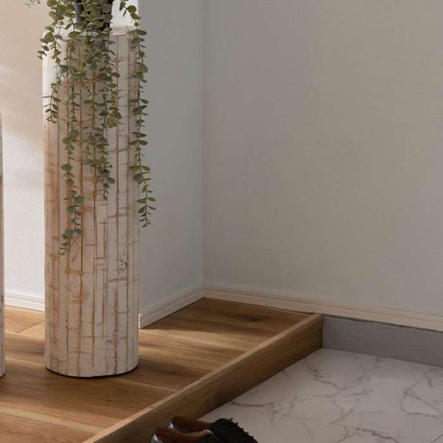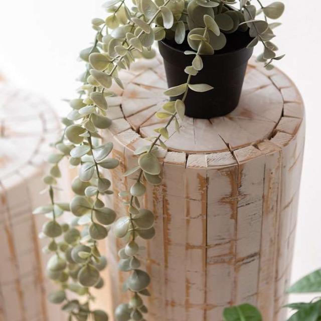 高さ68cm。ひとつひとつ表情の違う丸太型のグリーンベース。ホワイトカラーのナチュラルな雰囲気がグリーンを際立たせます。