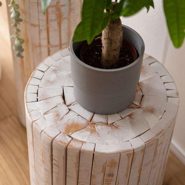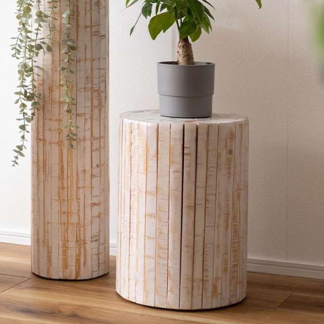 ■商品名:グリーンベース 高さ40cm 天然木 丸太型 ウッドピース 円柱 ホワイトカラー 台 ディスプレイ インテリア オブジェ