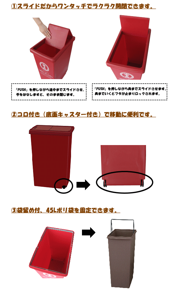 ・袋留め付、45Lポリ袋を固定できます