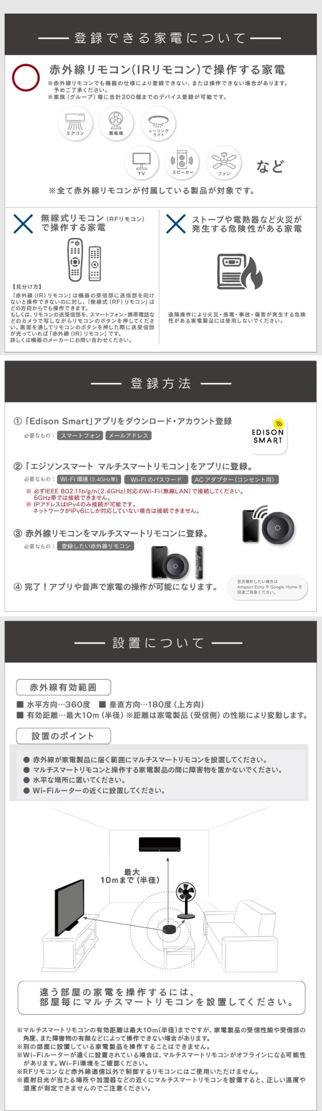 | 商品名 | エジソンスマート マルチスマートリモコン S03 EDISON SMART MULTI SMART REMOTE CONTROLLER S03 |