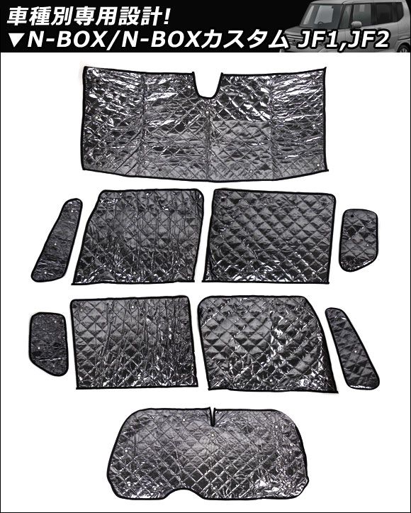 サンシェード(日除け) ホンダ N-BOX/N-BOXカスタム JF1,JF2 自動ブレーキ有り車 2011年12月〜 ブラック 5層構造 入数:1台分フルセット(10枚) AP-SD003