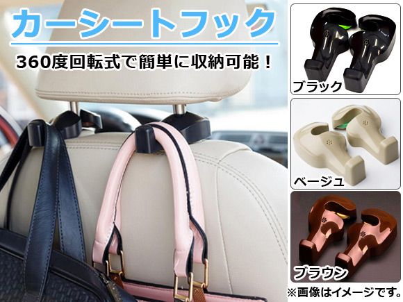 カーシートフック 車内用 ヘッドレストに引っ掛けるタイプ 回転収納可能! 選べる3カラー 入数:1セット(2個) AP-AS016 カラー: ブラック ベージュ ブラウン