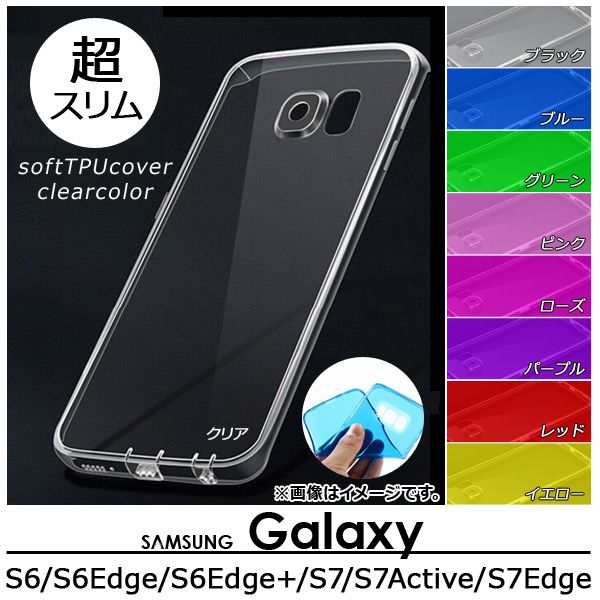 AP Galaxyケース バックカバー ソフト クリアカラー キズや衝撃もガード! 選べる9カラー S6/S7 AP-TH973 カラー: ブラック レッド ブルー イエロー グリーン パープル ピンク クリア ローズ
