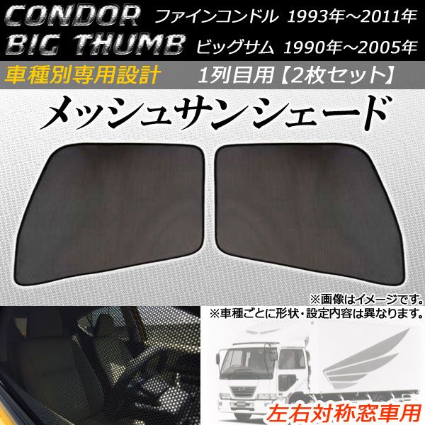 メッシュサンシェード ニッサンUD ファインコンドル/ビッグサム 左右対称窓車用 1990年〜2011年 はめ込み式 1列目窓用 AP-MSD050-2-IN 入数:1セット(2枚)