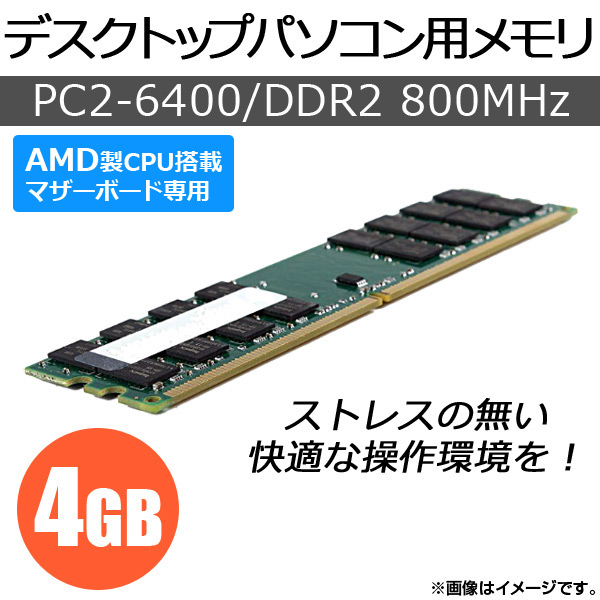 デスクトップパソコン用メモリ AMD専用 DDR2 PC2-6400 4GB×1枚 240pin DIMM AP-TH138 メモリ メモリー 増設メモリ 増設メモリー 増設 追加 交換 拡張 デスクトップPC用メモリ 物理メモリ 物理メモリー デスクトップパソコン デスクトップPC デスクトップ パソコン PC メモリモジュール SDRAM RAM FUJITSU FMV-ESPRIMO FMV-D5170 CELSIUS X840 HP Business Desktop dc5850 dc5750 Pavilion s5130 v7000 a6763w ProLiant DL365 DL385 DELL Inspiron 531S Dimension C521 E521 OPTIPLEX 740 740DT Gateway DX4200 高速化 快適 レスポンスアップ 800MHz デュアルチャネル オーバークロック 4ギガ 240ピン