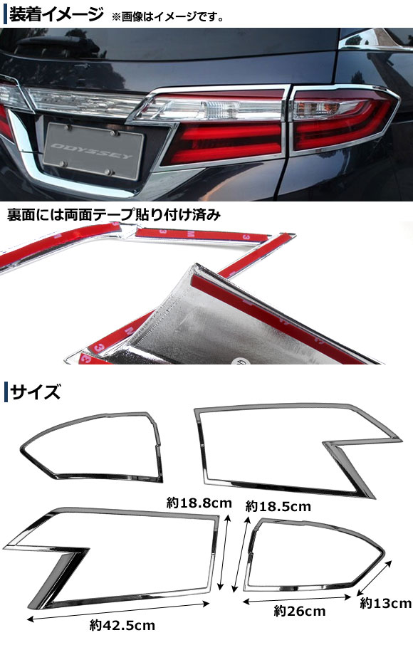 AP テールランプカバー ABS AP-RF005 入数:1セット(4個) ホンダ オデッセイ/ハイブリッド RC1,RC2,RC4 2013年11月〜 本田技研工業 テールレンズカバー テールランプトリム オディセイ オデッセー オディッセー Odyssey アブソリュート アブソルート G EX hybrid absolute テールレンズ テール テイル ランプ ライト リアランプ リアライト Tail Lamp Cover バックライト バックランプ 尾灯 リア リヤ カバー アクセント ガーニッシュ リム トリム ベゼル メッキ メッキパーツ シルバー クローム 銀 鏡面 外装 外装パーツ パーツ エクステリア ドレスアップ カスタム カスタマイズ 装飾 automobile motorcar オートモービル モーターカー カー 車 自動車 車両