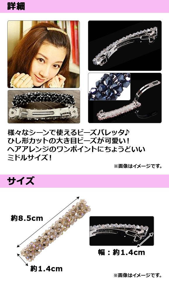 ビーズバレッタ ひし形カットビーズ 様々なスタイルに合わせやすい♪ 選べる7カラー AP-AR060 カラー: ブラック ホワイト パープル ピンク ネイビー グレー ベージュ