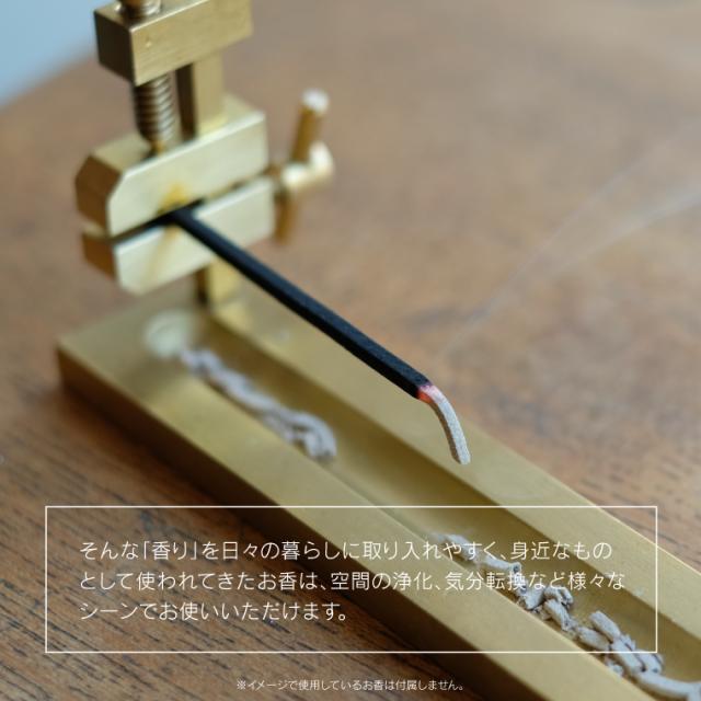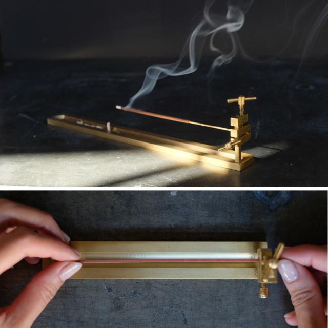 お香を固定する金具には日本で古くから使われている大工道具の「ハタガネ」を使用。