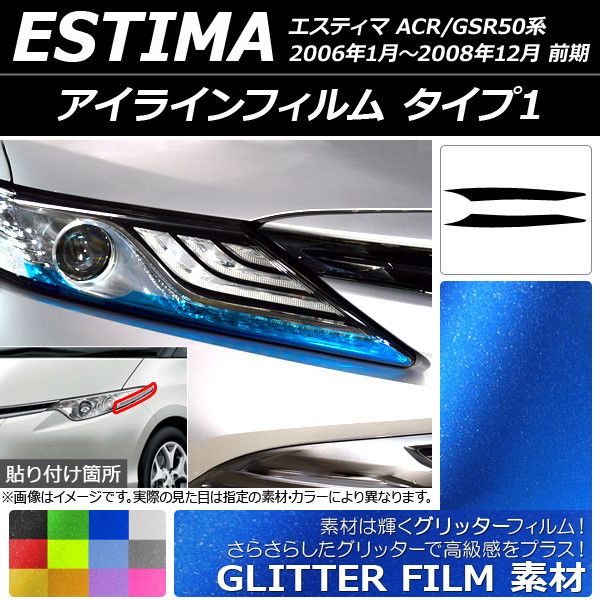 アイラインフィルム トヨタ エスティマ 50系 前期 2006年01月〜200812月 グリッタータイプ タイプ1 選べる12カラー AP-YLGL062 入数:1セット(2枚)