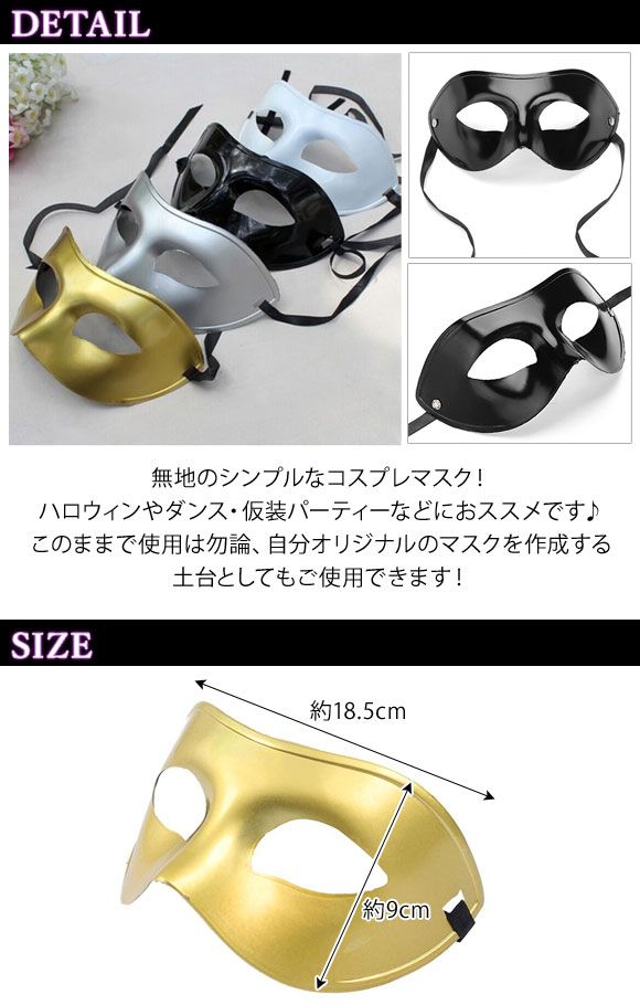コスプレマスク 無地 ハーフマスク ベネチアンタイプ オリジナルのマスクを自分で作れる♪ 選べる4カラー AP-AR186 カラー: ブラック ホワイト ゴールド シルバー