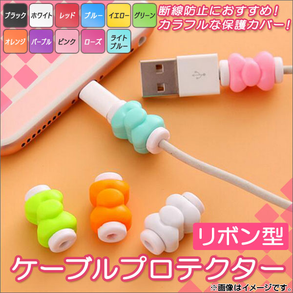 ケーブルプロテクター リボン型 ケーブルを可愛く保護♪断線防止におススメ! 選べる11カラー AP-TH846 カラー: ブラック ホワイト レッド ブルー イエロー グリーン オレンジ パープル ピンク ローズ ライトブルー