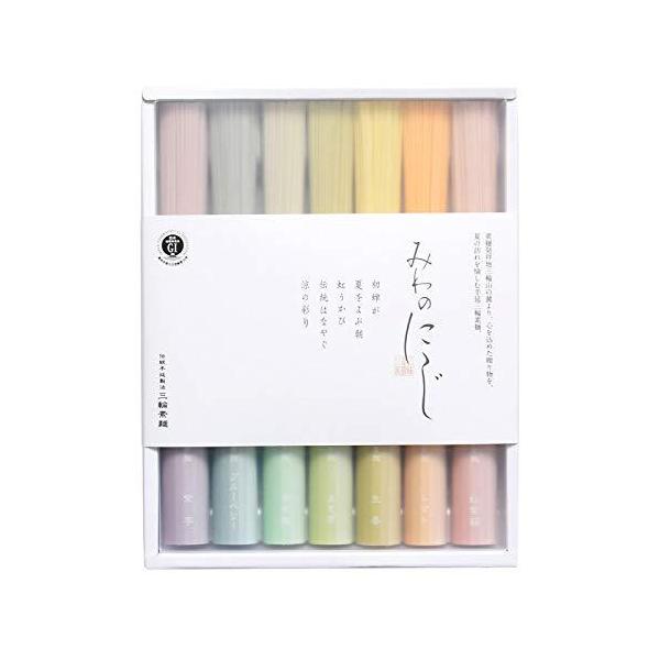 三輪そうめん カラフルそうめん 小西 みわのにじ 素麺 カラフル 虹色 乾麺 詰め合わせ ギフト 化粧箱入り RMW-12 手延べ素麺 50g×7