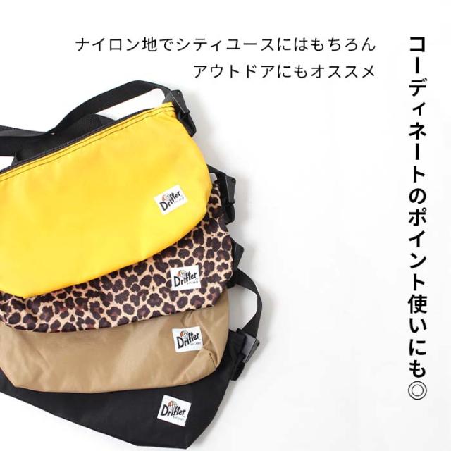 drifter ドリフター ショルダーバッグ セカンドバッグ サコッシュ 鞄 カバン 肩掛け 小さい 小ぶり ミニポーチ ミニ お出かけ 便利 黒 ブラック 青 ブルー ベージュ レオパード ヒョウ柄 オトナカジュアル かわいい トレンド 定番 レディース 女性 カジュアル ブランド シンプル