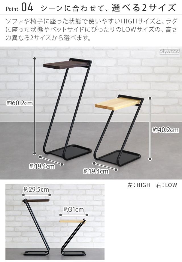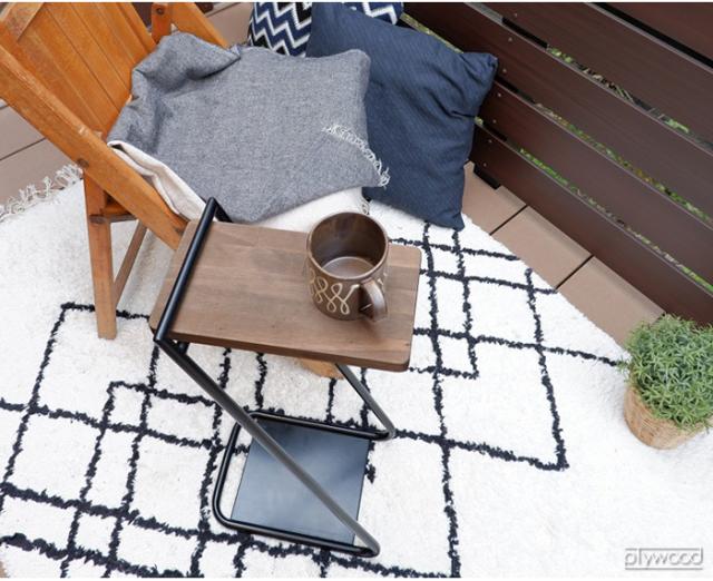 Z型の形状はソファにも設置しやすく、足元には植物や本も立てて収納することも可能。丈夫なスチールと、天然木の組み合わせはインテリアにもマッチします!