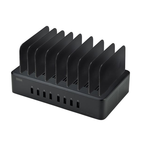 最大8台のタブレットやスマートフォンなどを同時に充電できる、スタンドとUSB充電器が一体になったUSB充電スタンド。