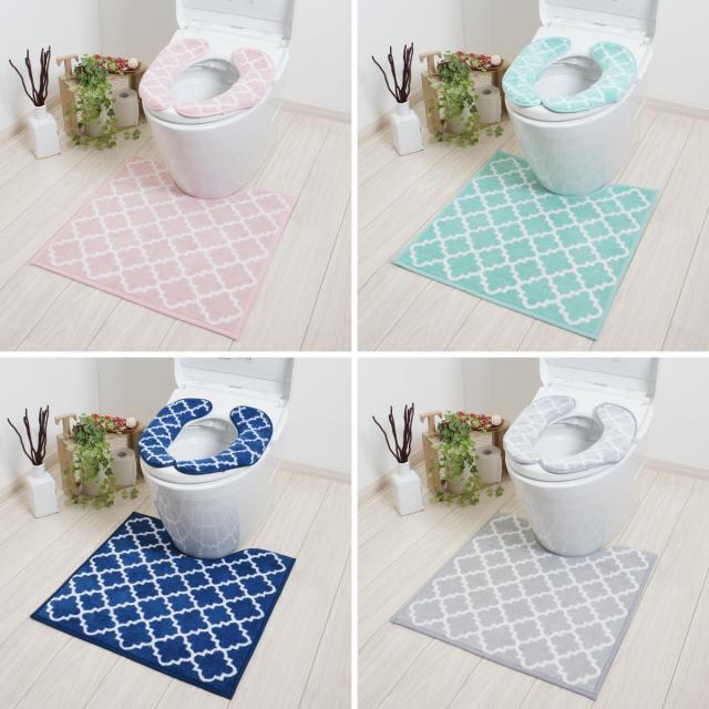 《 LH8610 洗濯OK 面ファスナー トイレタリー トイレ用品 トイレグッズ トイレマット 蓋カバー トイレスリッパ すべりどめ ふわふわ ふかふか オリエンタル モダン パステルカラー ニュアンスカラー ピンク ネイビー グリーン グレー 》