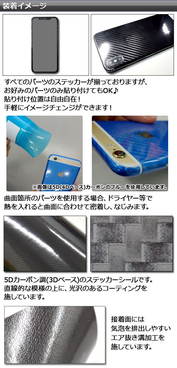 スキンシール 5Dカーボン調(3Dベース) iPhone用 背面タイプ2 保護やキズ隠しに! 選べる20カラー iPhoneX,XRなど AP-5TH891