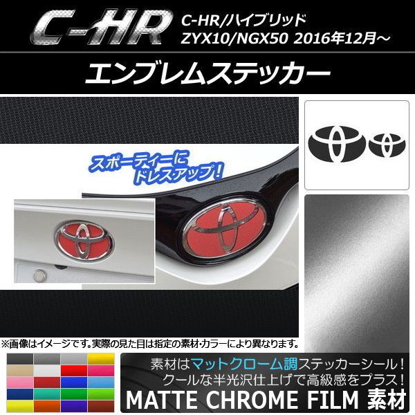 エンブレムステッカー マットクローム調 フロント・リアセット トヨタ C-HR NGX10/NGX50 ハイブリッド可 2016年12月〜 選べる20カラー AP-MTCR1052