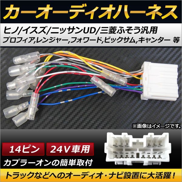AP カーオーディオハーネス ヒノ/イスズ/ニッサンUD/三菱ふそう汎用 14ピン 24V AP-EC124