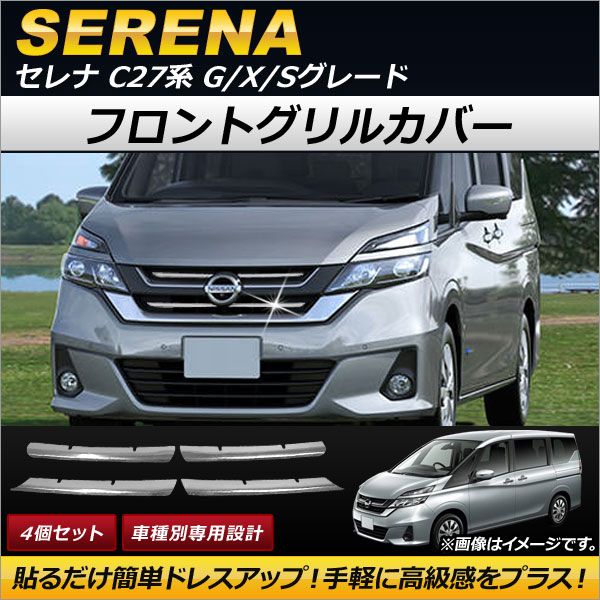 フロントグリルカバー 日産 セレナ C27系 G/X/Sグレード e-POWER含む 2016年08月〜 ステンレス製 入数:1セット(4個) AP-FG062